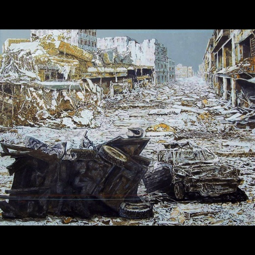 「空爆の残響」 F100号、油彩 “Reverberation of Air Raid” F100 , oil painting